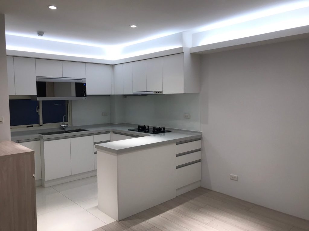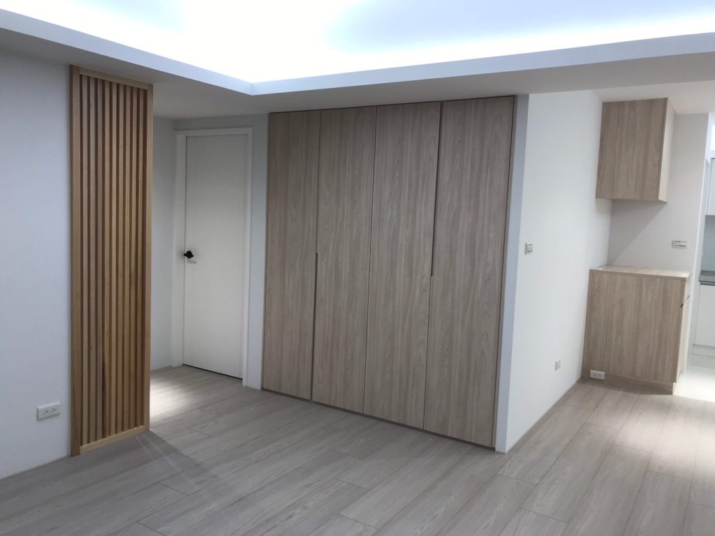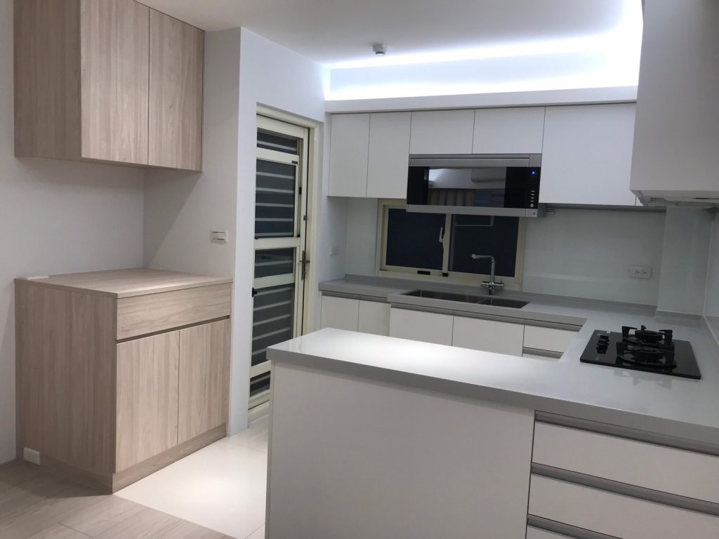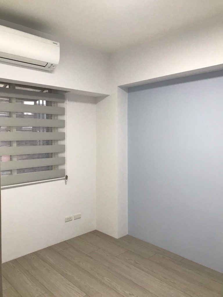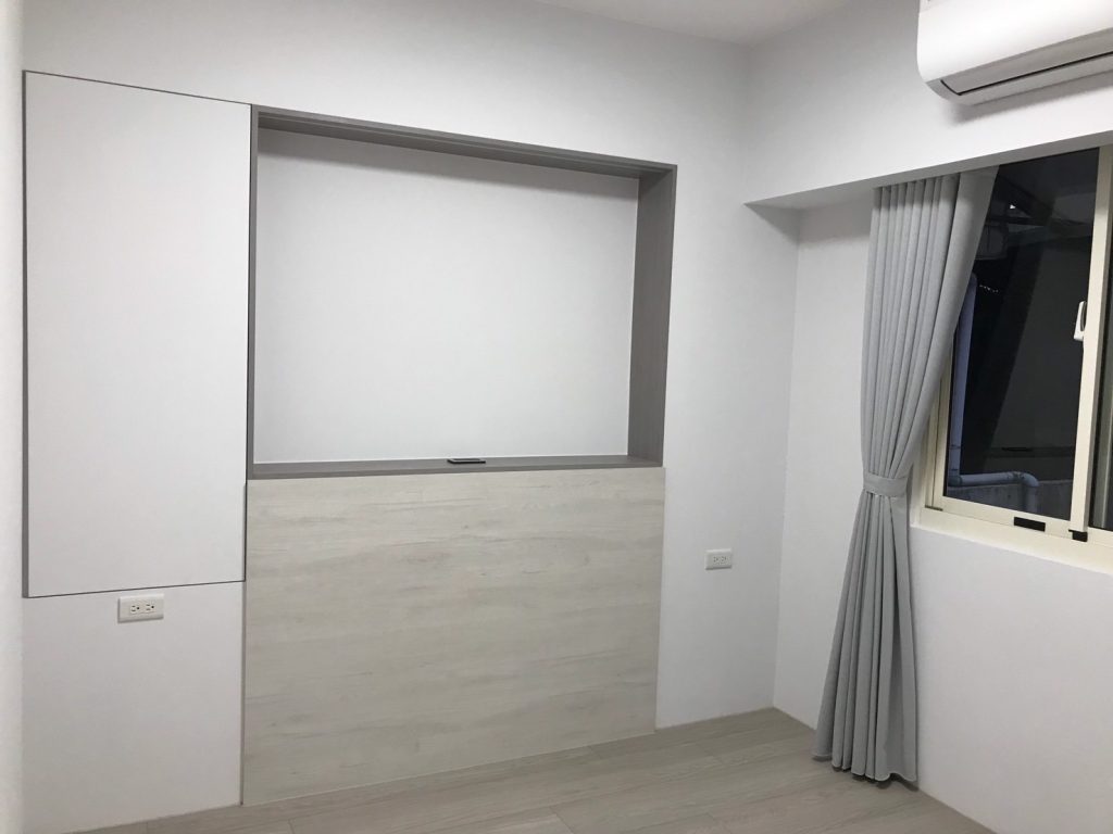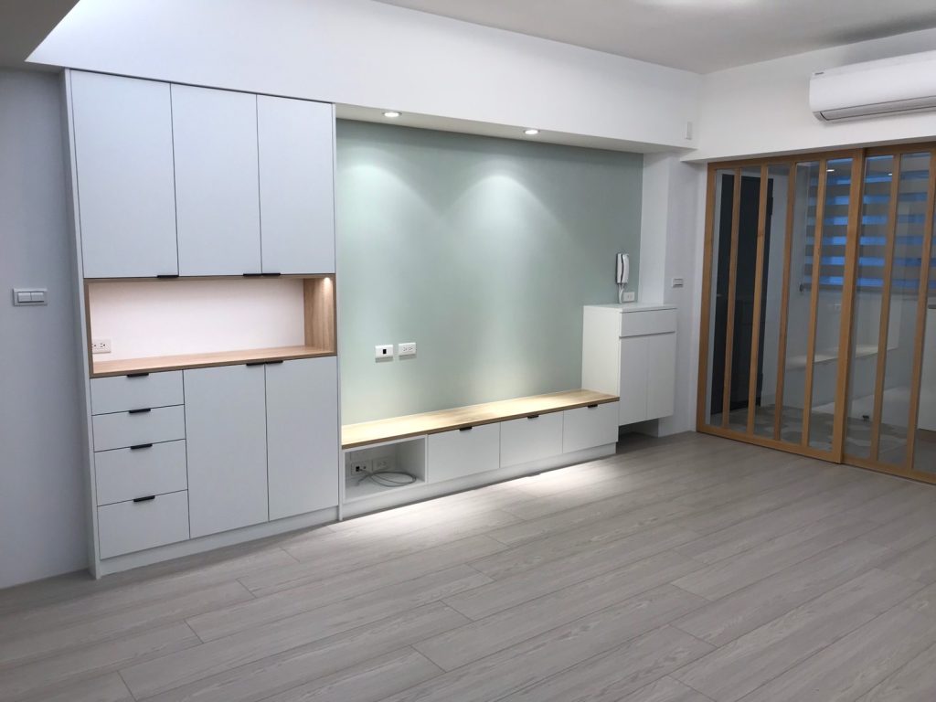 在永和的這個案子裡,我們打破了常規的用色,大膽在客廳電視牆使用了清爽的薄荷綠(莫蘭迪綠)特殊漆,搭配下方的懸空白色櫃體,讓空間瞬間充滿了年輕、活潑的氧氣感。