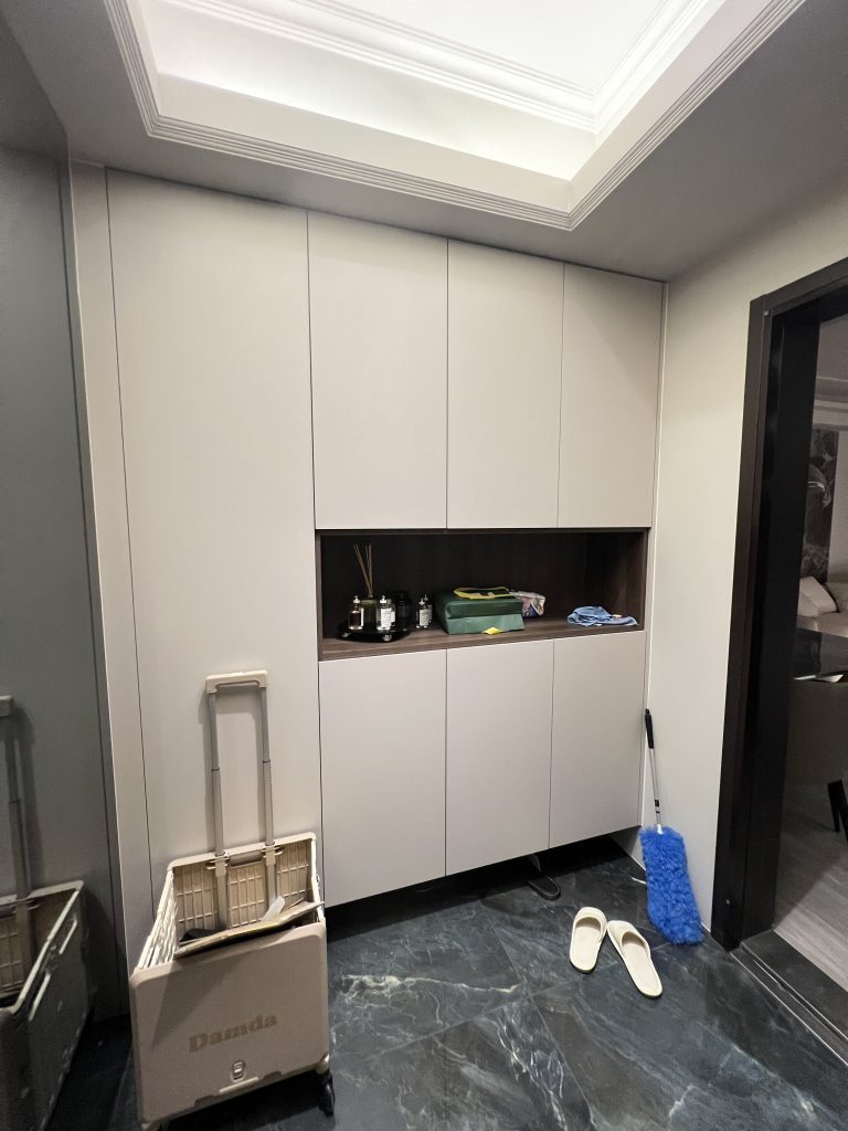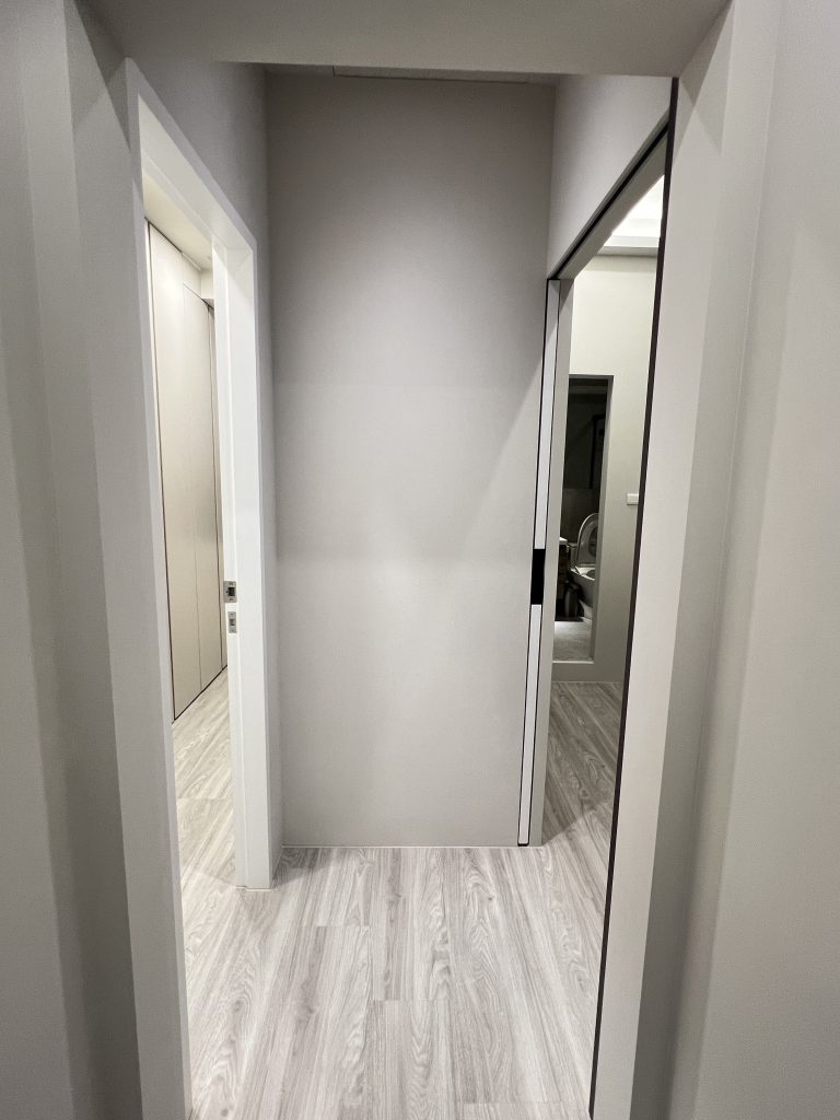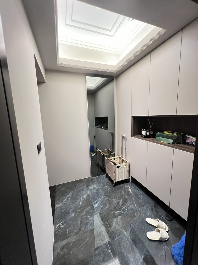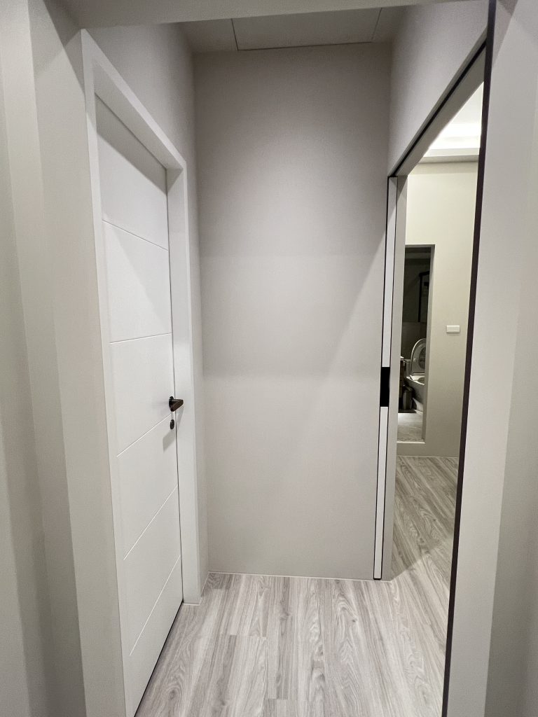 這是一個位於內湖,充滿現代輕奢質感的居住空間。設計團隊以低飽和度的灰階特殊塗料為牆面基底,搭配弧形沙發的柔和線條,營造出沈穩卻不冰冷的現代美學。